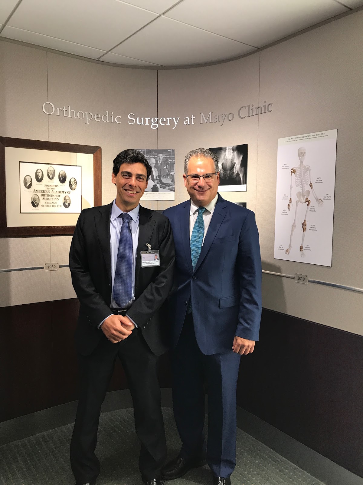 Durante los meses de Junio y Julio el Dr de la Cuadra realiza un programa de formación como Visiting Clinician en la Unidad de Hombro y Codo de la Clínica Mayo. Durante el mismo tuvo la oportunidad de acompañar al Dr Joaquín Sanchez-Sotelo, actual Jefe de la Unidad de Hombro y compañero de facultad del Dr de la Cuadra. También coincidió con los Drs Bassem Elhassan, Sperling y Morrey.