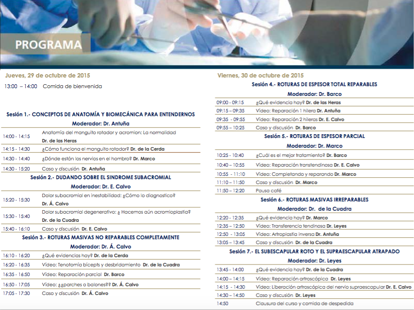 Los días 29 y 30 de octubre el Dr de la Cuadra participó con varias ponencias y como moderador de una mesa, en el Curso celebrado en Madrid y dirigido por el Dr Antuña. El curso fue muy dinámico e interactivo, con un formato interesante.